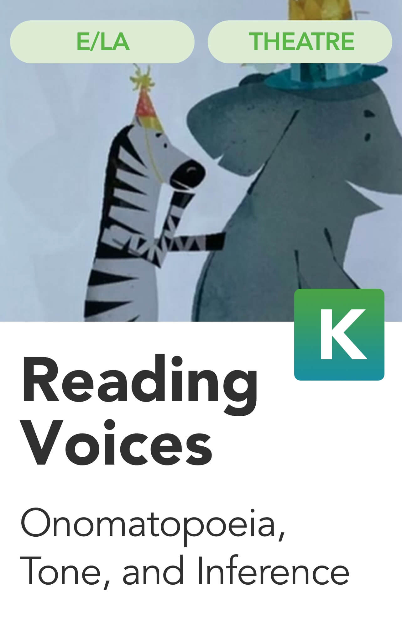 TH:Pr6.1.K.a:With prompting and support, use voice and sound in dramatic play or a guided drama experience (e.g., process drama, story drama, creative drama). (e.g., process drama, story drama, creative drama).